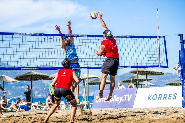 Hráči Beachclubu Strahov nejprve v základní skupině porazili řecký 4 Sports Club Athens, když úvodním utkání Oliva s Kurkou vyhráli 2:0 (23:21, 21:18) nad párem Ntallas/Sideris a v tom druhém Štoček s Melmukou jasně přehráli 2:0 (21:14, 21:17) pár Tsigaridas/Semitekolos Faolaras.