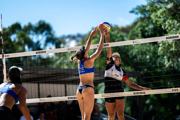 České ženské dvojky vstoupily do utkání lépe a při technické time outu vedly 12:9, Paraguayky se ale nevzdaly a skvělým sidoutem a dohranými bodovými míči postupně vývoj první sady otočily a zvítězily 21:18. Druhý set byl ale o něčem jiném. „Zatlačily jsme na servisu, zlepšily se v obraně a pestrou hrou si udržovaly procenta na útoku velice vysoko,” popsala Kylie díky čemu společně s Marťou poslaly utkání do tie breaku – 21:16.
