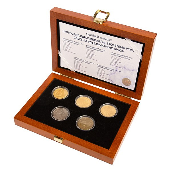 V roce 2021 slavíme rovných 100 let českého volejbalu a Česká republika je zároveň jednou z hostitelských zemí mistrovství Evropy volejbalistů. Při této mimořádné příležitosti se Česká mincovna ve spolupráci s Českým volejbalovým svazem rozhodla připomenout největší historické úspěchy našich hráčů. Výjimečná vzpomínka se skládá z pěti pamětních medailí, které jsou replikami prestižních sportovních trofejí ze zlata, stříbra a bronzu.