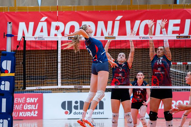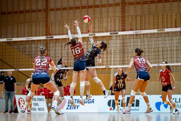 Domácí: Pragerová, Šulcová, Pavlová, Jelínková, Pavlíková, Körmendyová, libero Pešková. Střídala: Fixová