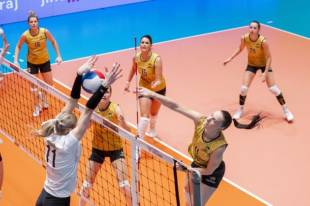 Domácí: Mikelová, Strušková, Legien, De Vos, Fukalová, Bagniak, libero Dedek. Střídaly: Dohnalová, Janošcová, Gebauerová