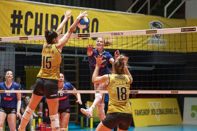 Domácí: Deisl, Dvořáková, Bažó, Jasečková, Cruz, Makoňová, libero Slavíková. Střídaly: Zapletalová, Abendroth, Remešová