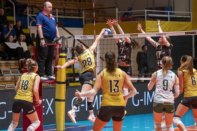 Domácí: Nováková, Širůčková, Šmídová, Silva, Vyklická, Furdová, libero Koukalová. Střídaly: Šrámková D., Matějková, Veselá