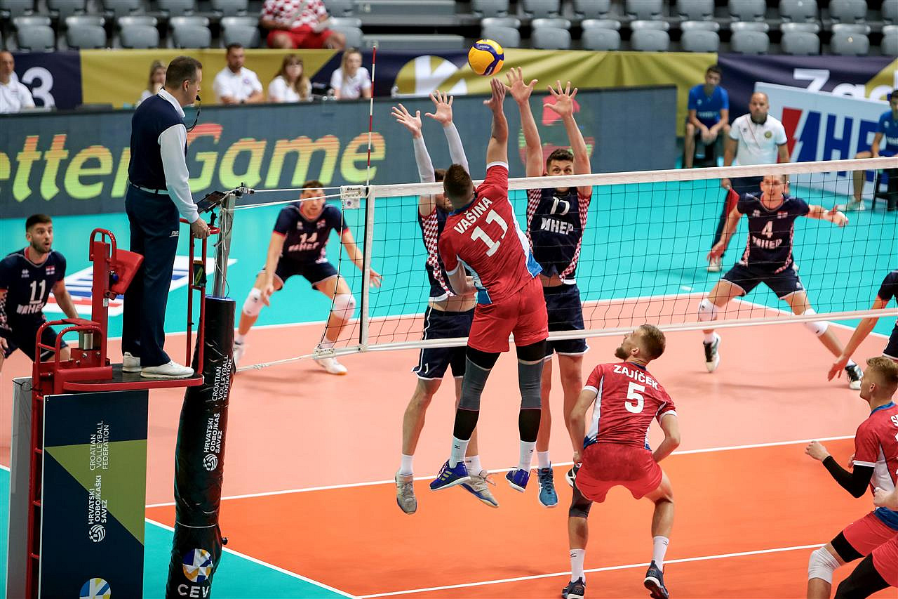 Chorvatsko: Sestan, Mihalj, Dirlic, Marelic, Nikačević, Zhukouski, libero Pervan. Střídal: Kulušič