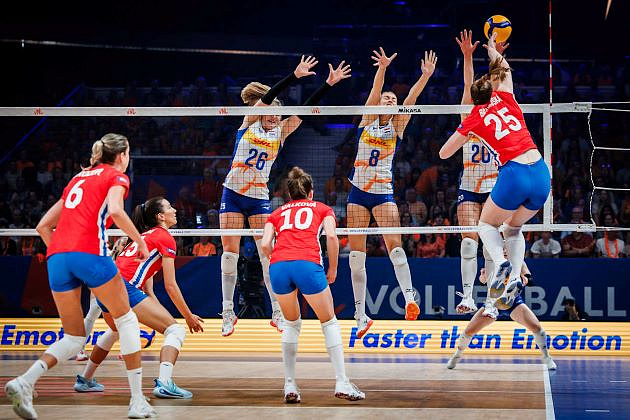 Diváci ve vyprodané aréně v holandském Apeldoornu sledovali vyrovnané utkání, ve kterém se vedení neustále přelévalo z české na nizozemskou stranu a zpět. České volejbalistky pro třech odehraných sadách vedly 2:1, domácí hráčky ale zlepšily servis, nedovolily soupeřkám skládat míče a došly si pro vyrovnání i jasné vítězství v tie-breaku. Závěrečné utkání letošní Ligy národů si Češky zahrají v neděli od 12:30 proti Belgičankám.