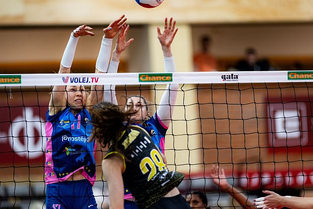 VK Prostějov: Deisl, Dvořáková, Bažó, Madan, Cruz, Makoňová, libera Slavíková, Janečková. Střídaly: Zapletalová, Jasečková, Abendroth